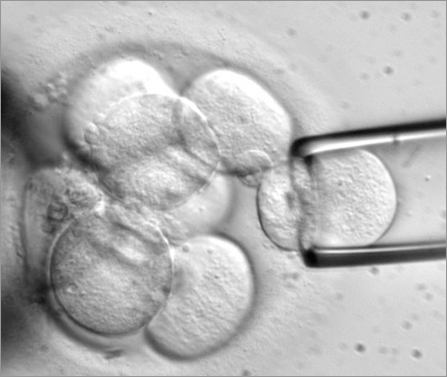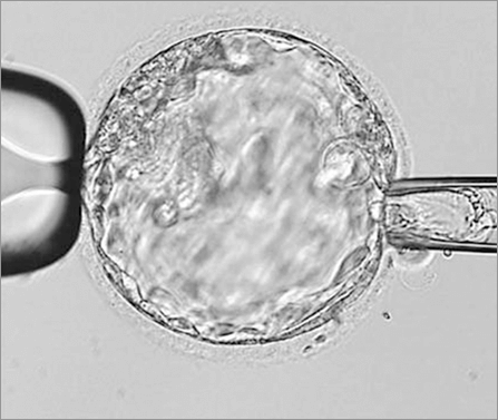수정된 3일 배아 또는 5-6일 배아에서 각각 할구(blastomere) 또는 영양외배엽(trophectoderm)을 채취해