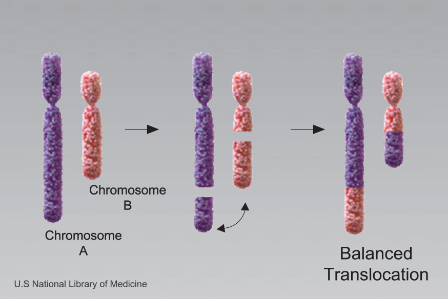 난자/정자가 감수분열할 때에 이수성을 유발시켜 태아에게 염색체 이상의 확률을 높이는 균형전좌(balanced translocation)가 되겠습니다.