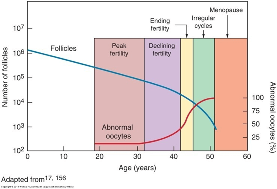 난자는 새로이 만들어내지 않기 때문에 나이를 먹으면 먹을수록 가지고 있는 난자의 수는 적어지고,